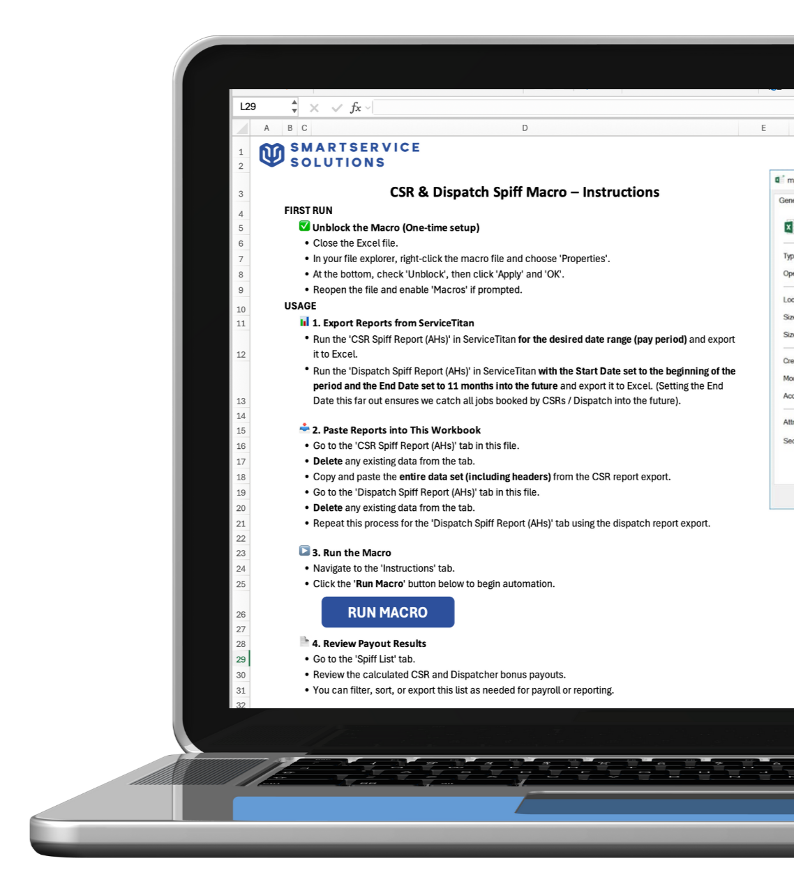 Once we verify your setup, we’ll provide your customized Excel file and: - A step-by-step Loom video showing how to use it